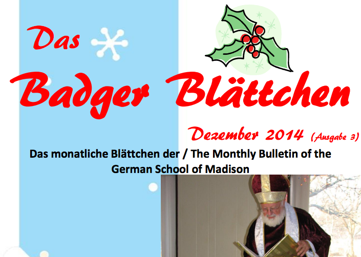The latest edition of the Badger Blättchen, produced by our youth group (teachers: Chris Tabisz and Iris Hengst), has arrived. Check it out and read about the visit from St. Nikolaus: Badger Blättchen Dezember 2014.