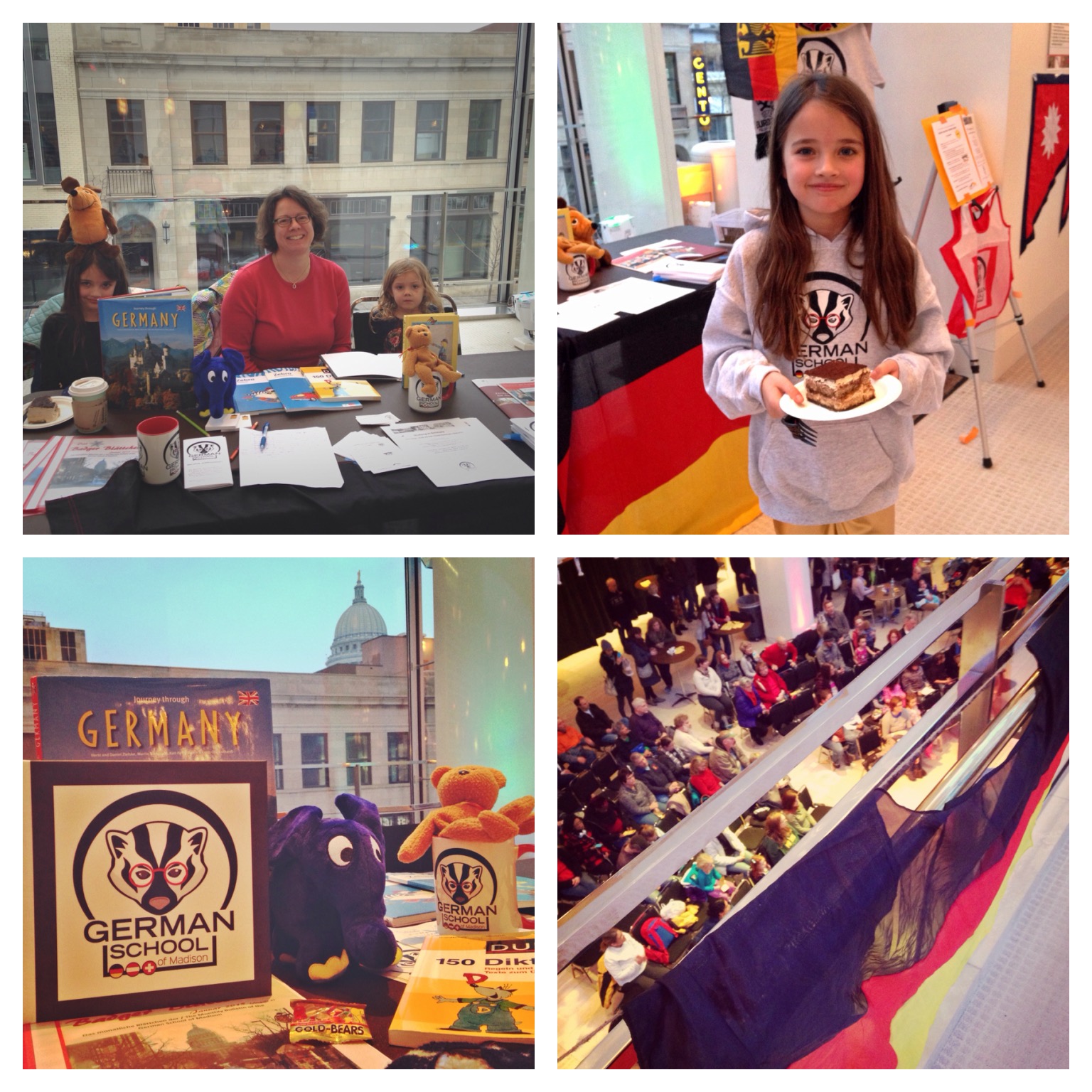 Great turnout at the International Festival at the Overture Center last week! The German School of Madison had a table and answered questions about classes for children and adults (there is considerable interest in the latter). Our kids did a great job telling other kids how much fun it is to learn German, showing off their snazzy new hoodies and t-shirts. Many people were interested in our upcoming “Study in Germany” event (in cooperation with the Central Agency for German Schools Abroad, the Goethe-Institut, and several UW-Madison departments) as well as in our summer camps. We also now have a brochure that gives a first quick overview of the school.
