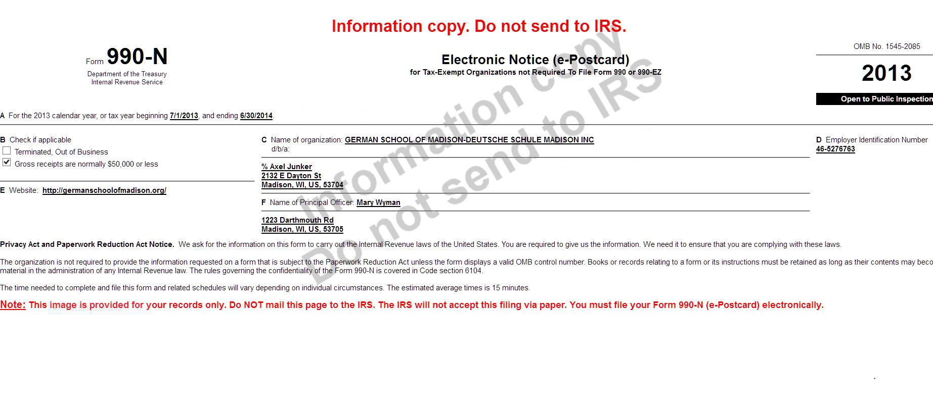Form 990-N 2018-2019 Share this: Share on X (Opens in new window) X Share on Facebook (Opens in new window) Facebook Like Loading...